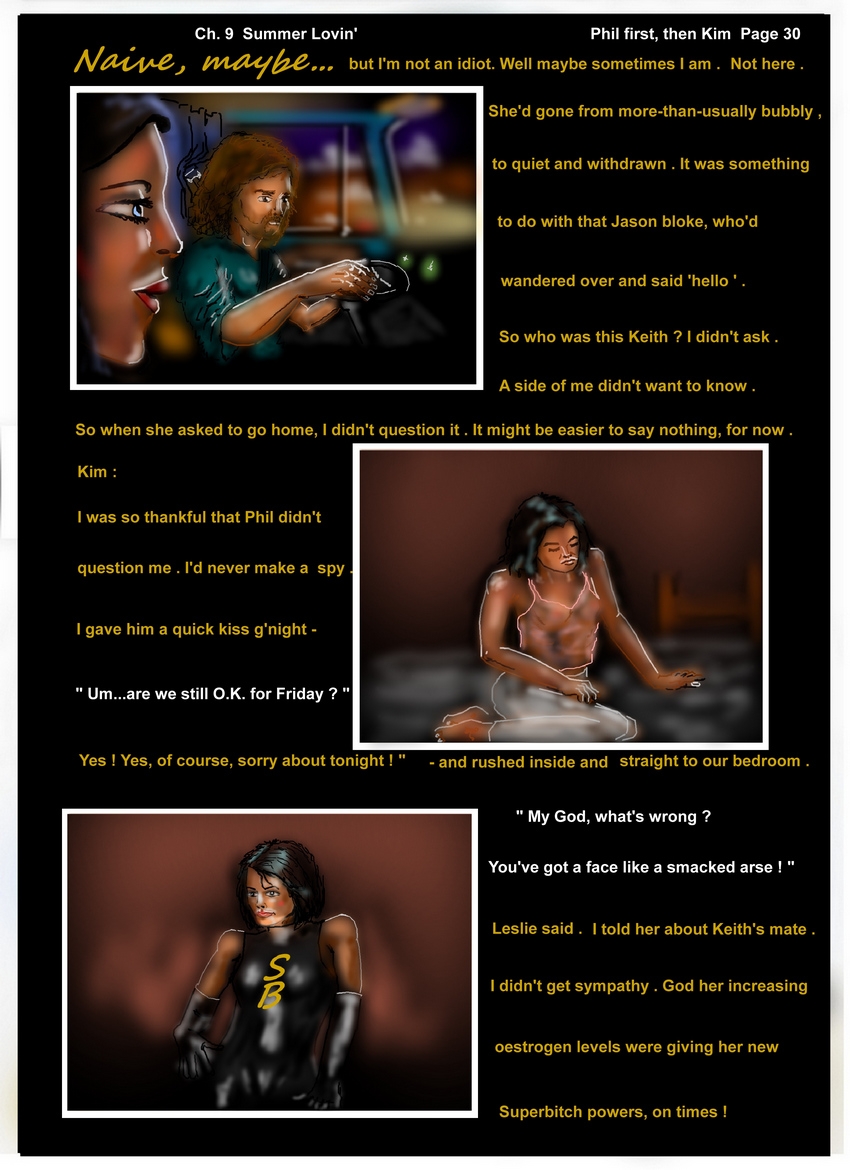 First Prev - Postscript - Ch. 33 Epilogs - End Notes for Book 2 - Ch. 33 I Get A Kick Out of YOU Leslie Page 32 "...dreams.." - Ch.33 I Get A Kick... Kim Page 31 "pathetic fallacy" - Ch. 33 I Get A Kick Out of YOU Kim Page 30 The Floppy Disc 2 - Ch. 33 I Get A Kick Out of YOU Phil Page 29... The Floppy Disc - Ch. 33 I Get A Kick Out of YOU Phil Page 28... A 2nd call - Ch. 33 I Get A Kick Out of YOU Phil Page 27... The Appointment - Ch. 33 I Get A Kick Out of YOU Leslie Page 26.. So I got this letter.... - Ch. 33 I Get A Kick Out of YOU Phil Page 25... Samba Pa TI - Ch. 33 I Get A Kick Out of YOU Phil Page 24 Blue Box...sad version of Tardis - Ch. 33 I Get A Kick Out of YOU Leslie Page 23 Camille was cursing and threatening... - Ch. 33 I Get A Kick Out of YOU Leslie Page 22 Devastated - Ch.33 I Get A Kick... Phil Page 21 strawberries and scream - Ch. 33 I Get A Kick Out of YOU Phil Page 20 ripping the lock and chain off - Ch. 33 I Get A Kick Out of YOU Phil Page 19 ...a kicked dog / C'est tout ! - Ch. 33 I Get A Kick Out of YOU Leslie Page 18 ...a sinking feeling - Ch.33 I Get A Kick... Phil Page 17 KLaaannnggg - Ch. 33 I Get A Kick Out of YOU Phil Page 16 Ouch ! - Ch. 33 I Get A Kick Out of YOU Phil Page 15 Camille's new decor - Ch. 33 I Get A Kick Out of YOU Phil Page 14 Leslie's desperate plea... - Ch. 33 I Get A Kick Out of YOU Leslie Page 13 A knack,a talent...a curse - Ch. 33 I Get A Kick Out of YOU Phil Page 12 Leaving Paris - Ch. 33 I Get A Kick Out of YOU Phil Page 11 "So I woke...and was alone" - Ch. 33 I Get A Kick Out of YOU Leslie Page 10 "Phil, PHIL ! If you wake up now..." - Ch. 33 I Get A Kick Out of YOU Leslie Page 9 Whoofing down a fillet mignon - Ch. 33 I Get A Kick Out of YOU Phil Page 8 Angst before dinner - Ch.33 I Get A Kick... Phil Page 7 Early call - Ch. 33 I Get A Kick Out of YOU Leslie Page 6 Wrong time and place - Ch. 33 I Get A Kick Out of YOU Leslie Page 5 A last fling - Ch. 33 I Get A Kick Out of YOU Phil Page 4 A word in my ear . - Ch. 33 I Get A Kick Out of YOU Leslie Page 3 Wild night / slow day - Ch. 33 I Get A Kick Out of YOU Leslie Page 2 Deleted calls - Ch. 33 I Get A Kick Out of YOU ( and other old songs ) Phil's INtro - Ch.32 April Fool(s) and Horses Page 23 Leslie ",,,and then the phne rang. - Ch. 32 April Fool(s) and Horses # 22 Leslie "The beeps had gone..." - Ch.32 April Fool(s) and Horses Page 21 Phil musical rooms - Ch. 32 April Fool(s) and Horses # 20 Leslie illusions - Ch. 32 April Fool(s) and Horses # 19 Phil - a note at Nana's - Ch. 32 April Fool(s) and Horses # 18 Leslie "Oustiti" - Ch. 32 April Fool(s) and Horses # 17 Phil Crappy Cornwall / Shitty Sheffield - Ch. 32 April Fool(s) and Horses # 16 Leslie's Renault 4 - Ch. 32 April Fool(s) and Horses # 15 Phil - ...upsetting Michelle / another canvas - Ch.32 April Fool(s) and Horses Page 14 Leslie Doc'...put me on "the plll" - Ch. 32 April Fool(s) and Horses # 13 Leslie You're not allowed to drive for a month... - Ch. 32 April Fool(s) and Horses # 12 Phil - Off to theatre - flashback - Ch.32 April Fool(s) and Horses Page 11 Phil "She's fine, Philip...well physically..." - Ch. 32 April Fool(s) and Horses # 10 Phil - "...only thing to do...see Nana.." - Ch. 32 April Fool(s) and Horses # 9 Lust...and love, but not primarily - Ch. 32 April Fool(s) and Horses # 8 Leslie (back in Feb) " I flew back to Paris " - Ch. 32 April Fool(s) and Horses # 7 Phil - Giles "catches" Dave steeling the van - Ch. 32 April Fool(s) and Horses # 6 Phil - Dave: a visit and a trip - Ch. 32 April Fool(s) and Horses # 5 Eve So I held back, then I wasn't hurt - Ch.32 April Fool(s) and Horses Phil P4 Light flashing...off that bloody padlock - Ch. 32 April Fool(s) and Horses # 3 Phil ...colder in Cornwall - Ch. 32 April Fool(s) and Horses # 2 Phil Cool in Paris - Ch. 32 April Fool(s) and Horses # 1 Phil Dust and heat; no humidity - Ch.31 Sex and the Single... Interlude Leslie 4-4 dumping on mum - Ch.31 Sex and the Single... Interlude Leslie 3-4 Diagnosis fright - Ch.31 Sex and the Single... Interlude Leslie 2-4 The ring - Ch. 31 Sex and The Single...Intersex Leslie Interlude 1-4 - Ch. 31 Sex and The Single...Intersex Phil P 17 So...I headed south - Ch. 31 Sex and The Single...Intersex Phil P `6 Xmas Day Chez Willis - Ch. 31 Sex and The Single...Intersex Leslie P 15 "So! Now YOU know what it's like.." - Ch. 31 Sex and The Single...Intersex Phil P 14 "..mind was in turmoil " - Ch. 31 Sex and The Single...Intersex Phil P 13 " just between us.." - Ch.31 Sex and the Single... Phil P 12 Apparently, Leslie rang / taking the padlock off now ? - Ch. 31 Sex and The Single...Intersex Phil P 11 Well I guess that's it - Ch. 31 Sex and The Single...Intersex Phil P 10 Clueless and embarrassed - Ch. 31 Sex and The Single...Intersex Leslie P 09 Xmas - pulling a cracker ! - Ch. 31 Sex and The Single...Intersex Leslie P 08 "He'd always have Paris" - Ch. 31 Sex and The Single...Intersex Phil P 07 I had to buy red... - Ch. 31 Sex and The Single...Intersex Leslie P 06 ..assured I no longer featured in the catalogue - Ch. 31 Sex and The Single...Intersex Leslie P 05 Through the Red Door, again - Ch. 31 Sex and The Single...Intersex Leslie P 04 Jacques is bacques ? - Ch. 31 Sex and The Single...Intersex Phil P 03 Plenty of nights alone - Ch. 31 Sex and The Single...Intersex Leslie P 02 Giles certainly wanted me - Ch. 31 Sex and The Single...INtersex person who identifies as Female P 01 Giles again - Ch. 30 "Indecent Proposal" Phil Page 24 Rewind 3 - Ch. 30 "Indecent Proposal" Phil Page 23 Rewind 2 - Ch. 30 "Indecent Proposal" Phil Page 22 Rewind 1 - Ch. 30 "Indecent Proposal" Leslie Page 21 October in Paris - Ch. 30 "Indecent Proposal" Leslie Page 20 "You really love me, don't you, Phil?" - Ch. 30 "Indecent Proposal" Leslie Page 19 "with you before, you were such a good f-" - Ch. 30 "Indecent Proposal" Leslie Page 18 " I'll be 'out here', if you come back" - Ch. 30 "Indecent Proposal" Leslie Page 17 "Garage Sale !" - Ch,30 Indecent Proposal Lesli
