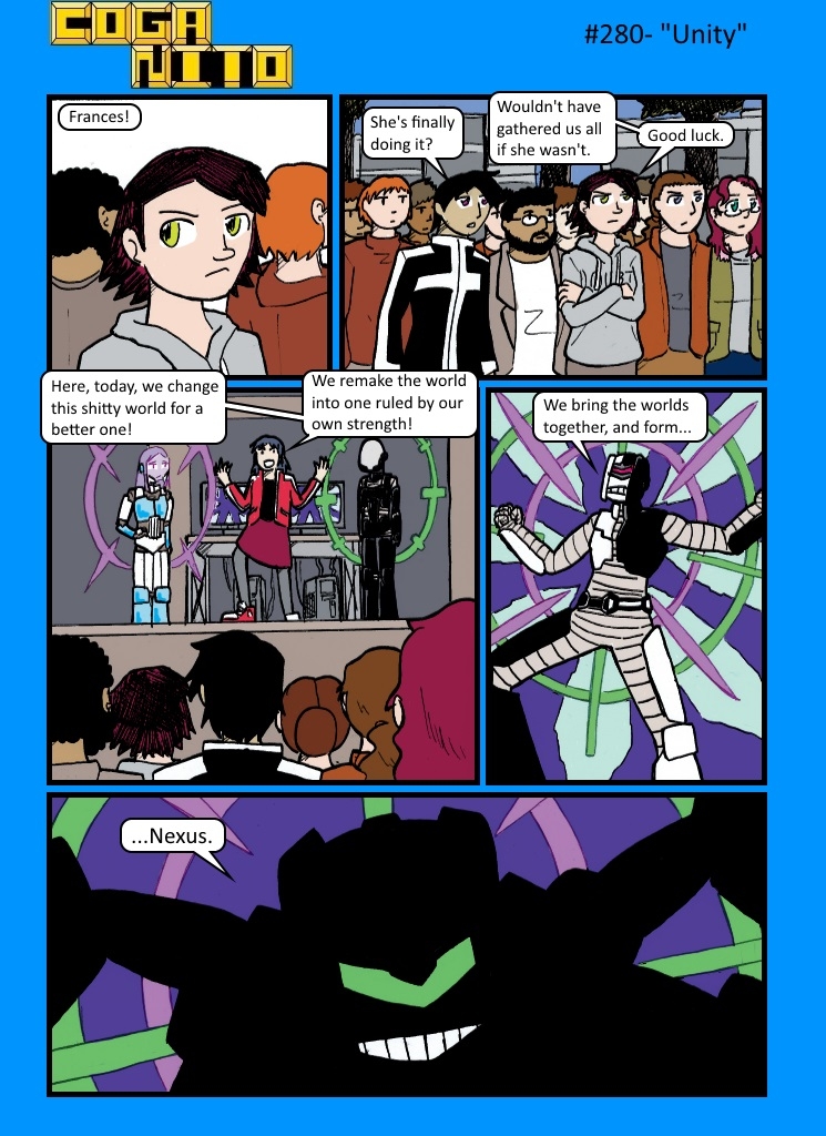 Breathe a sigh and get comfy, because we're actually moving into the final arc, after all this time. I'd always figured, since the beginning, that the final major threat would be Niko. I wanted there to be a question of how much we could actually trust her, even though she's nominally on Eric and co's side, so that by the time we got to this point, it's not just a complete 180 on her part. I think it's possible that being 'linked' to BB isn't helping her mental state, but at the end of the day, she's the one in control and this is coming from her dissatisfaction with the 'real' world and her fascination with the Corpse. Anyway.