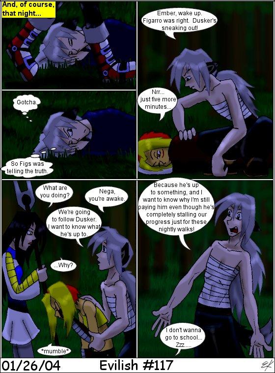 I'm just temporarily putting my comic here until my site is back up. I will delete all these pages when my site is working again. Please don't link to the DrunkDuck account; instead, link to http://evilish.pensandtales.com