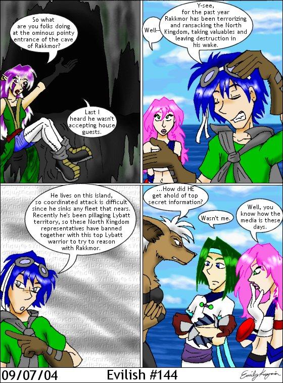 I'm just temporarily putting my comic here until my site is back up. I will delete all these pages when my site is working again. Please don't link to the DrunkDuck account; instead, link to http://evilish.pensandtales.com