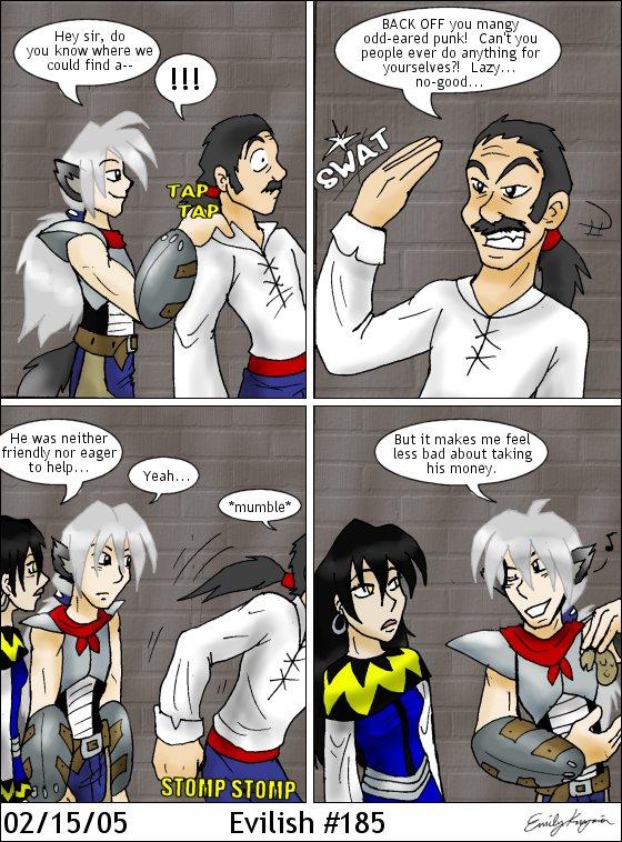 I'm just temporarily putting my comic here until my site is back up. I will delete all these pages when my site is working again. Please don't link to the DrunkDuck account; instead, link to http://evilish.pensandtales.com