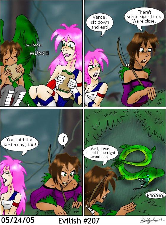 I'm just temporarily putting my comic here until my site is back up. I will delete all these pages when my site is working again. Please don't link to the DrunkDuck account; instead, link to http://evilish.pensandtales.com