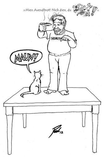 Moin Lüe! Hett mal woller bet to'n Avend duert, aber düt mal, wiel mi dat Teken so veel Spaaß maakt hett. Un wiel düt Schietding dat mal woller nich glieks hoogladen wull. Ennelk kunn ik mal'n beten so as ik woll wull. Nu bün ik bannig mööd, aber mi geit dat richtig goot. Ik finn Krischan sien Idee goot. Ik finn dat jümmers goot, wenn mi een Granat vörbibringt. Blots of dat woll ok so funkschoneert, as he sik dat dinkt… In den engelschen Kommentar heff ik noch op'n Fraag antert, worüm Gundula nix mit Töveree versöökt hett, üm ehr Roh to hebben. Ik hebb nu keen Bock mehr, dat allens noch mal to schrieven, aber wenn ji dat wullt, maak ik dat geern noch. In'n Prinzip is dat woll so, dat se Tiger nich ut Versehn wat doon will. Un worüm hett de de Döör nich afsloten? Wiel'n Katt överall rin kummt, wo se rin will, un'n Tiger noch mehr. Se will nich woller 'ne neie Döör köpen möten. Dorüm kann Tiger ok jeden Morgen na'n Postbüdel rut; neie Kellerdören sünd man düer. :/ Na ja, denn man goot Nacht! Kiekt mal woller rin!