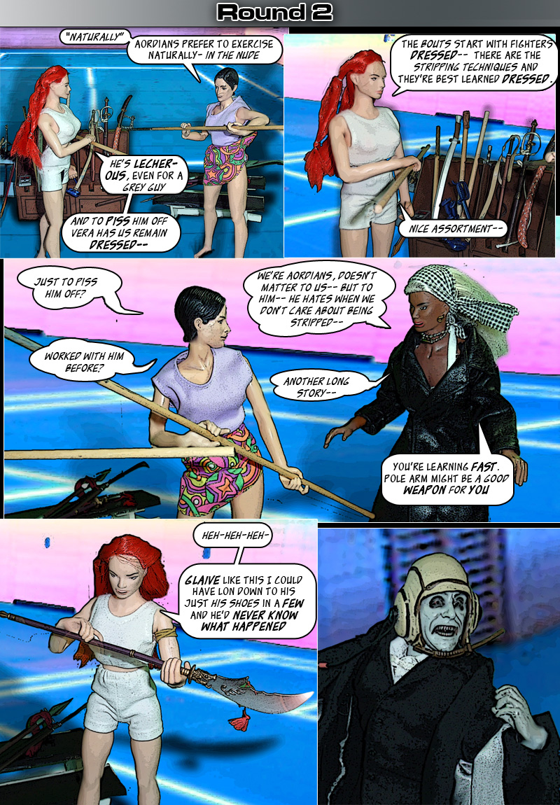 The battle girl cast list has has been updated with the Torlak'Garoth battle girls. Those of you without DD memberships at some point I will put it in the regular pages so you can be refer to it. Also added was a page on some common ships from the Last War. The Last war is also known as the Final War. The names are interchangeable. Aordians don't have Earth hang-ups about nudity. So why is Vera making life difficult for Lon? See the comic Battle of the Robofemoids where they first met.