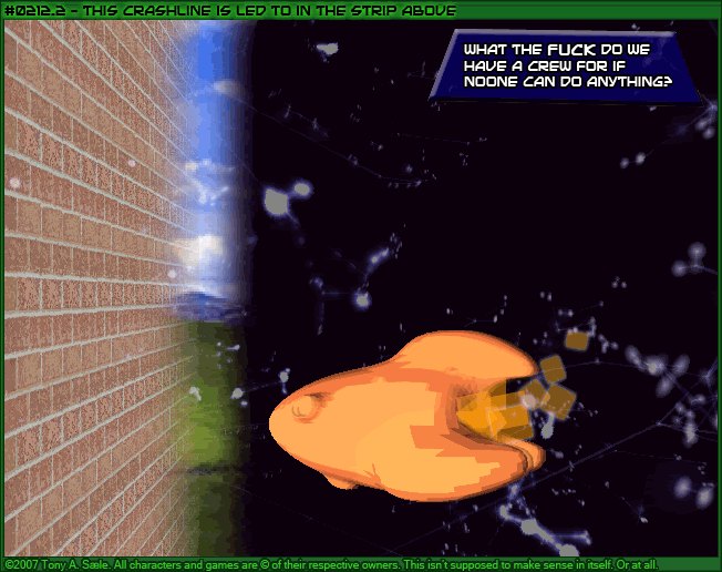 Little Digital People First Prev - I'm sick - 0215: Poor IP-Filtering - 0214: They're Upside-Down and Apparently Not Very Talkative - 0213: This Comic is Optimized for Viewing in Widescreen - 0212: This Strip's Crashline is Found in the Comments - 0211: The Suckiest Firewall Ever - 0210: Enter a Search Term Here - 0209: Tug of War - 0208: Get it? Hyperdrive? Huh? Get it? - 0207: Selling Salvation, Everything Must Go - 0206: Live and Work in the USA - Unrelated Filler: Two Darwinians Having Beer Internet Explorer - 0205: Vacant Vacation Spot - 0204: Takover Taken out, Take off - 0203: Thermophysics with Charlie - 0202: You Fall So That You Can Learn To Rise Again - 0201: Makes Your Rocket Take off, Doesn't it? - 0200: Fishy Revolution - 0199: Dangerous Waters - 0198: Mysterious Reapperance of Mystery - 0197: Fishy Fish - 0196: Fish - 0195: If You Don't Like It, Go Jump in the Ocean - 0194: Wobble and Rob - 0193: General Relativity With Charlie - 0192: He Hasn't Even Heard of P2P - 0191: Super Especially Awesome Start of an Awesome Adventure - 0190: Of Men and Malls - 0189: Freelance Bum Crude Fishiness - 0188: Right Man for the Wrong Job - 0187: Jolly Fluffy Red Hat Day - 0186: Home - 0185: Pissed off, Mean and Surly - 0184: Tempting Temper Tantrum - 0183: Fish in an Acid Pit - 0182: Hycrocide - 0181: Fearbase - 0180: Weapon Race - 0179: He's Going To Need Better Protection Than That - 0178: Additional Shooting - 0177: Frag Counter - 0176: Groups of One - 0175: But Who's the Antagonist? - 0174: Handy Adam - 0173: Righteous Robbery - 0172: Fear the Beerless One - 0171: Terminal Determination - 0170: Inconsiderate Conversation - 0169: Misinvasion - 0168: Transferious Business - 0167: I Can't Blame Him - 0166: Death and Taxes - 0165: Lightningnessity - 0164: And He's Going for the Fourth Frag - 0163: Boom Goes the Hero - 0162: Cliffhanger at a Cliff Little Digital Tournament - 0161: Downloadage - 0160: Uploadage, A Hundred Percent - 0159: Uploadage, Fifty Percent - 0158: Uploadage - 0157: Darwinian Anatomy With Charlie - 0156: Mad, Mad I Say! - 0155: One Minor Flaw - 0154: AutoClones, Transform Back - 0153: Failed Initiative Roll - 0152: You Can't Slam a Codec - 0151: Blood Loss to the Head - 0150: He Totally Dies - 0149: Red Robot of Death - 0148: A Person Just isn't Complete Without a Character Flaw - 0147: Activatinitation Metal Gear Robin, Metal Gear - 146: Karmative - 0145: Like a Critter - 0144: I Expect You Expected a Witty Title Here, Did You Not? - 0143: Cliffhanger in Your Face - 0142: Flashbang in Your Face - 0141: Cratey Goodness - 0140: The Poor Dude is Bored - 0139: Heavy Iron Crate - 0138: A Bit of a Late Appereance - 0137: This is not Warcraft in Space - 0136: The Red Scar - 0135: He's a Slow Learner - 0134: He Should Never Be Allowed To Talk - 0133: Foreglowing - 0132: Lance Supposedly Means "Long" - 0131: How Come They Never Use the Strongest Attack Immediately - 0130: I Think There Was Such an Enemy in Donkey Kong Country - 0129: Makeshift Marker - 0128: Do it Like MacGyver - 0127: Bigger Than Pieces - 0126: Subconcious Rage - 0125: Blizzard Raven - 0124: Ohh, Shiny - Part the Second Metal Gear Robin, Insert Disc Two - 0123: Ohh, Shiny - Part the First - 0122: Always Wear a Seatbelt - 0121: I Considered Screentones - 0120: Gift of the Silver Tongue - 0119: Ass Cover - 0118: Lost and Found - 0117: Nobody Can Resist the Box - 0116: Metal Gear Should Be More Like Red Faction - 0115: He Just Stood up on the Wrong Side of the Torture Device - 0114: Surely You Saw This Coming - 0113: One Thing Anyone Who's Played MGS2 Can Agree On - 0112: How Shocking - 0111: Blood to the Head - 0110: He Was Fishy All Along - 0109: Incomprehensible Information - 0108: You Were Saying? - 0107: Bloodstained Concrete Talk - 0106: A Flashback to a Hundred and Four Strips Ago - 0105: He's Called "Big Boss" for a Reason - 0104: Little Digital Chutes and Ladders - 0103: The Bosom is Mightier Than the Sword - 0102: One, Two, Three - 0101: Long Tunnel of Pain - 0100: Look, a Distraction - 0099: Virii's Best Friend Metal Gear Robin, There are no continues, my friend - 0098: Here, Doggie, Doggie - 0097: The Closest You Get to Being Covered in Money - 0096: Blatant Foreshadowing - 0095: Trough Fire and Water - 0094: Neither Awkward nor Comfortable - 0093: Silly Title Goes Here - 0092: He Talks too Much - 0091: Ninja are Mammals - Unrelated Filler: Seventeenth of May Comic - 0090: Not Quite the Plan - 0089: Too Bad You Never Get a Railgun in MGS - 0088: Surrealisation - 0087: Maths with Charlie - 0086: Hall of Blood - 0085: Railguns and Bitches - 0084: He Did Say "Nikita Launcher" - 0083: I Killed Six Guards and a Goat with the Fork in MGS3 - 0082: Where Did He Keep That Mop? - 0081: The Robin Uncharm - 0080: The Robin Charm - 0079: It's Robin Time - 0078: She's an Emo, if You Didn't Catch it - 0077: Misfortune - 0076: The Ghost of Eternal Urinating - 0075: Too Much Information - 0074: Otacon was Strong in Plot Relevance - 0073: Legendary Triforce of Legends - 0072: An Effective Office Wouldn't Have Solitaire Installed - 0071: Gasination - 0070: The Laws of Physics Denies the Existance of Electrocuting Floors - 0069: If You Del33t it and Switch the Syllables, V304 Becomes Dave - 0068: Poor Lonely Box Gets Company Metal Gear Robin, There Are No Heroes in War - 0067: Smoking is Hazardous to Your Health - 0066: If Bugs Bunny Consumed Beer - 0065: Where Did He Keep That Nikita Launcher? - 0064: Tankular Trouble - 0063: Physics with Charlie Gone Bad - 0062: So Much Text it Hurts - 0061: Lawyers Will Feed on my Flesh for This Strip - 0060: Exit the Ninja - 0059: Enter the Ninja - 0058: Gasp-a-Roo - 0057: Fist of Fury - 0056: Floor of Fallyness - 0055: T3h Ph34r - 0054: Physics With Charlie - Metal Gear Solid Edition - 0053: Totally Unexpected Turn of Events - 0052: There Only Was up to a Level Seven Card - 0051: Poor Lonely Empty Box Metal Gear Robin, 'tis Better to Have Drunk and Lost... - 0050: Da-da-da-daaaaaaa