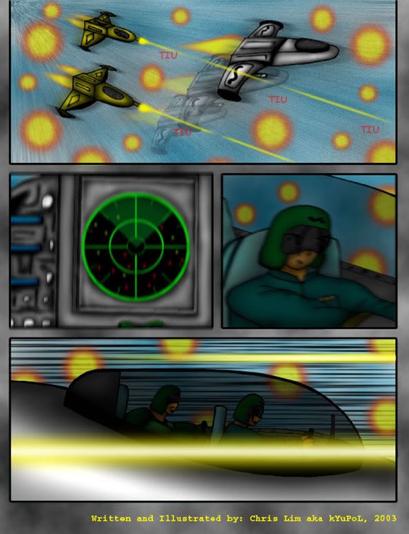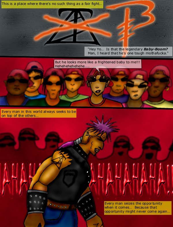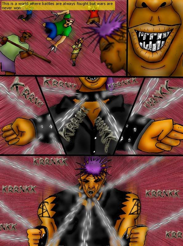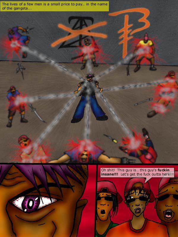 Notes on Page (and Rant) Congratulations to Maycroft for being the winner of the (extended) Fanart contest. This piece of art looks like Yusuke (Yuyu Hakusho) meets Sakura (Naruto). Maybe I should do a filler as a joke… Eman dressed up as Yusuke and Claudita dressed up as Sakura. :) Anyway, please check out his comic, Superbad!!!http://www.drunkduck.com/Superbad/index.php ____________________ Meanwhile… do you wanna know the REAL winner of this fanart contest? Its really this guy known as greydamage . And here is his supposed entry for the fanart contest:http://fc08.deviantart.net/fs71/f/2010/326/1/1/hitori_by_greydamage-d32qk5o.jpg He didnt wanna enter into the contest because he thinks that that is such a horrible ugly painting. O_O *facepalm with omfg gasp* So he loses this contest by forfeiture. I mean what's wrong with you, bro!!! I WISH I could draw like that. I probably *might* be half as good as he is if I spend 6 months in "art boot camp" or something. I mean… spending 8 hours a day for 6 months just grinding my head through art book after art book and learning the concepts and religiously doing the exercises in those books… and doing life drawing classes at the same time… while being mentored by an art teacher with very low tolerance for error… and with the same level of iron will type motivation to improve my art I had during the time period of 2002-2004. Those of you who have been following my comics since the beginning have definitely noticed the level of improvement in my art during the time period of 2002 - 2004. But for the sake of newcomers, Let the evidence speak for itself: Done back in 1998 or 1999http://www.drunkduck.com/BK_CLASSICS/index.php?p=750626 Still learning the rudiments of coloring with MS paint (2000)http://img.photobucket.com/albums/v74/kyupol/OLD%20ART/killer7_1.gif http://img.photobucket.com/albums/v74/kyupol/OLD%20ART/killer7_5.gif Developed some level of proficiency with MS Paint (2001)http://img.photobucket.com/albums/v74/kyupol/OLD%20ART/killer21_3.jpg http://img.photobucket.com/albums/v74/kyupol/OLD%20ART/killer21_4.jpg 2002 MS paint with some free program on PHOTO EDITING (I even forgot whats the name of the program)http://img.photobucket.com/albums/v74/kyupol/OLD%20ART/killer28_3.jpg http://img.photobucket.com/albums/v74/kyupol/OLD%20ART/killer34_5.jpg Learned to use Photoshop… AT LAST!!! I absolutely loved the burn+dodge tools!!! I tried on these images:http://img.photobucket.com/albums/v74/kyupol/OLD%20ART/killer38_8.jpg http://img.photobucket.com/albums/v74/kyupol/OLD%20ART/killer46_10.jpg But without the PSP effects and blur effects, here's more or less where I'm at:http://img.photobucket.com/albums/v74/kyupol/OLD%20ART/killer40_4.jpg http://img.photobucket.com/albums/v74/kyupol/OLD%20ART/killer42_6.jpg 2003 Clips from my old comic known as "KATROPA: The Story of Mara-Nina" that I never finished cuz I got bored of it.http://img.photobucket.com/albums/v74/kyupol/OLD%20ART/act1_sc2_p6.jpg http://img.photobucket.com/albums/v74/kyupol/OLD%20ART/act1_sc2_p7.jpg http://img.photobucket.com/albums/v74/kyupol/OLD%20ART/act1_sc2_p8.jpg http://img.photobucket.com/albums/v74/kyupol/OLD%20ART/act1_scene3_p3.jpg 2004 http://img.photobucket.com/albums/v74/kyupol/OLD%20ART/IMG_0873.jpg http://img.photobucket.com/albums/v74/kyupol/OLD%20ART/IMG_0910.jpg http://img.photobucket.com/albums/v74/kyupol/OLD%20ART/sketch2.jpg 2005 http://img.photobucket.com/albums/v74/kyupol/OLD%20ART/3.jpg Anyway as compared to my art from 2004-2005 to not too long ago, there is little to no improvement. I mean, it just got refined naturally just by sheer repetition. And I learned and experimented a couple times with different coloring methods. But thats about it. The stagnation is clear. :) Anyway, go check out greydamage's deviant art and tell him how awesome he is. http://greydamage.deviantart.com/ Hopefully he'll stop whining about how "horrible" he thinks his art is. :) __________________@Asbin, jgib99, mmm bacon0, SarahN, Adariel, jerrie, Genejoke, maycroft, Walrus - thanks for commenting. @Araya - lol. Super Saiyans do not exist. hehe… (at least in this comic)@SoniaCBU - The reason I'm kind to the Christian is because of the following reasons: - Upon further research and investigation, I discovered that CHURCHianity is NOT EQUAL to CHRISTianity. For starters, go look up (Acts17:24). And then I would like you to attend those "churches" that are run from a street corner or out of someone's living room. In most cases, the bigger the church, the more corrupt it is. - I admire their tenacity in opposition to the New World Order. 90% of the time, the guy out handing DVDs and doing flyer runs and reaching out to the homeless (alot of them are victims of this corrupt and rotten Babylonian New World Order System!!!), etc. is a Christian. - Their ability to love their enemies is indicative or a superior level of love. New Agers like to make fun of Christians and call them "laggards"… as if the "new age" love is somehow superior. New Agers generally have a higher level of spiritual knowledge than the average Christian but… New Ager love is INFERIOR to Christian love. They dont love their enemies. I arrived at that conclusion after grinding my head through tons of Christian and New Ager material. The Christian would bash your religion but with the intent of opening your eyes so you may go to heaven in the end. The New Ager (and other religions including atheism) would bash your religion with the intent of feeling high and mighty on top of an ivory tower. Get it? @ghostrunner - stay tuned for the next pages. Improvements would be evident. As I'm experimenting on different methods and I just got back my motivation to improve.