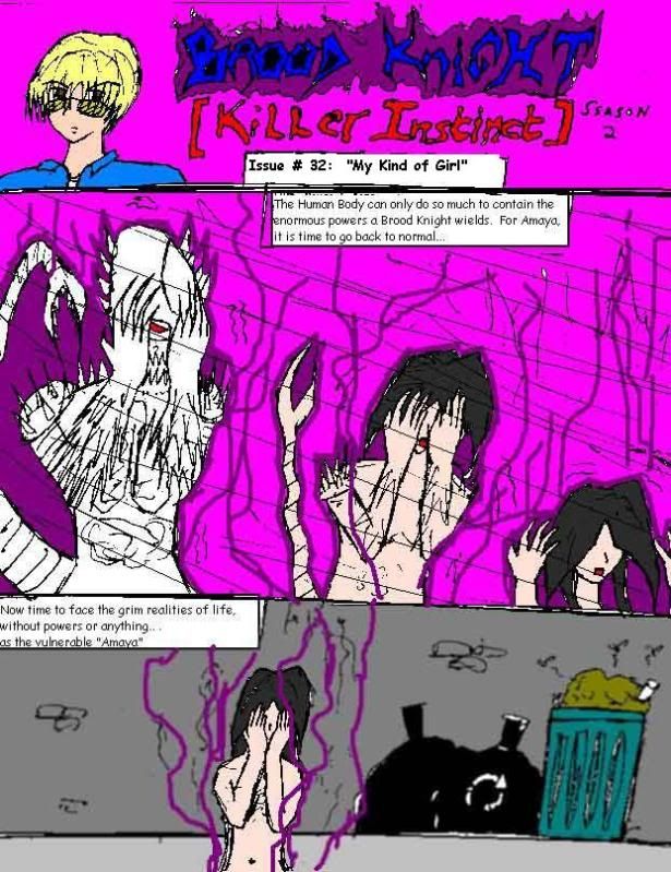 ***REGULAR UPDATES RESUME ON MONDAY, JAN 10, 2011***Notes on Page This is part of a scene where Cedrick gets nightmares then the Brood Knight "activates". When the Brood Knight activates, Cedrick loses it. But when the Brood Knight gets worn out and Cedrick returns to human form, what is left is fanservice material for the fangirls. (Warning: SEMI-NSFW)http://img.photobucket.com/albums/v74/kyupol/OLD%20ART/killer16_6.gif It also works the other way around when someone like Amaya gets worn out…http://img.photobucket.com/albums/v74/kyupol/OLD%20ART/killer32_1.jpg And now… I somewhat understand why Brood Knight seemed to have a decent-sized following even though its art was really crap compared to what I can do presently. Must be all that fanservice… :) ______________________@mmm bacon0, ghostrunner, Sariling Mundo, jerrie - thanks for commenting.@SarahN - I dont know. But so far I have a storyline in mind that incorporates Brood Knights (as in the CREATURE) with the MAG-ISA storyline. I somehow figured out a way to make it all blend in seamlessly. Its still in "very very rough draft"… this storyline. Tentatively, I'm calling it "ALIAS TOTOY NEPHILIM [Itim Na Karunungan] The title sounds like a Tagalog "gangster" 80s-90s action film… for a purpose. And Nephilim as in Genesis 6:4. And "Itim na Karunungan" translates to "the dark knowledge". Title may change. It will be set in the Philippines at first to develop the main character. Not sure if main character will be a guy or girl. If main character will be a girl, title would have to be changed. It will be set in the Philippines at first to develop the story… But then probably it goes around the world. The problem with that though is the fact that I'm not really a well-travelled person. It is a planned spin off to the MAG-ISA storyline. So far, I'm thinking of internal conflict within The Order as part of the storyline. Still disorganized and all over the place. Walrus - Holy smokes. That post made me wide-eyed for awhile until I read it carefully. Looks like poorly translated wrong grammar 19th century Tagalog to me. But let me translate it to English to see if I got it correctly:This is my failed attempt to try to tell you all what I know about Tagalog. This creepy google translate could bring you something that is totally different from my intended message, but at least I tried. I know, this could be Korean for all I know. @SoniaCBU (re: Amaya) - yep. you guessed it right. And somewhere in the Brood Knight storyline, Cedrick and Amaya got into a sexual relationship that started off as a friendship. However, Mara-Nina didnt like that… and Amaya also got pissed off cuz Cedrick didnt tell her he's already taken.@SoniaCBU (re: guns) - I dont know whether to agree or disagree with you on that. I'm sort of middle ground when it comes to "should convicted criminals be allowed to own guns after they have served their sentence." Point is, first things first which is to get more guns in the hands of the citizenry and to educate the public on the importance of having guns to defend themselves. I'm just pro 2nd amendment. I believe in the right to keep and bear arms. Also if you study your history, in every civilization, its only the slaves (or peasants) who werent allowed to carry weapons.