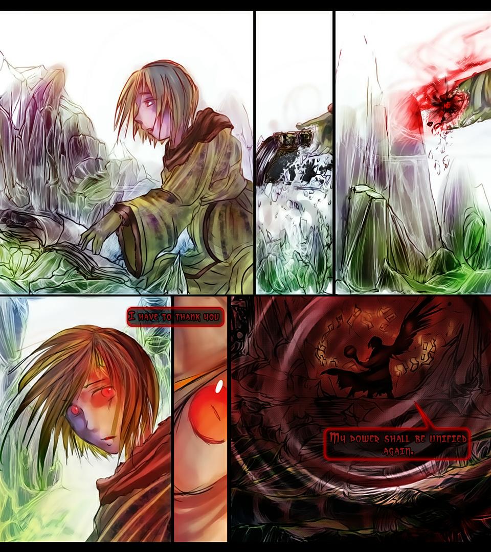 ================================================================== Afterwords ==================================================================The last defense of the Hatsura has failed. The last part of the Zodiac Monograph that sealed Venah's power has been removed by a pure-blood Hatsura, direct heir of the first Hatsura. And she did it by mistake, in ignorance of what might happens… Thank you very much for your reading! Side note: I may have done a little error in update dates… If you are somewhat lost, please look a page before ! I didn't post two pages today, but it seems that I did post two pages the same day (18th of October) ================================================================== Chapter list: ================================================================== - Memories From Requiem: "Her Heart" CHAPTER 1: Starting of The Prolonged Darkness CHAPTER 2: Break The Cristal Chair! CHAPTER 3: The Prince, The Priestess and the Furnisher CHAPTER 4: Ascend Into The True Faith CHAPTER 5: To The Eternal Land CHAPTER 6: Bloodstained Brotherhood CHAPTER 7: Fading Memories Of The Ethereal Dream - CHAPTER 7-A: Trails In The Mist - CHAPTER 7-B: The Ruler CHAPTER 8: An Echo In The Silence - CHAPTER 8-A: The Maiden Of The Rose Graveyard - CHAPTER 8-B: He Who Asks For Ruin CHAPTER 9: Imperishable Gloom Rhapsody Of The Crimson Belvedere - CHAPTER 9-A: Nuclear Fusion Rhapsody - CHAPTER 9-B: Phantasmagoria Of The Cycle Of Life CHAPTER 10: NecroFantasia - CHAPTER 10-A: Sad Love Song Of Heaven - CHAPTER 10-B: Venah ================================================================== Thanks for reading and for your comments ! ================================================================== @man in black: Thanks! @Sugarless: Thank you very much to you! @ghostrunner: Yeah, somewhat they're doomed… @Othosmops: Sure, it would be a little critical if she was to give birth to her baby there! But since she's in her third month, she should be fine about this… @Ayra: Nah, he never used the name "Nevah". Venah got two possible names: his name of God, which is nearly forbidden to pronounce in all the senses of the term, except for the Elder Gods (and yet they hesitate to call him by his actual name). This name is "Venah". And he also got an human name, made from his actual name, used when he was traveling on "forced" human form on the Sphere (the world). He never got another name. Note: He chosen the "Hevan" name, but no one knows from where comes his actual names. Nero did act more nicely with Hakka. Ever since he accepted to work for Hevan, he had doubts about his decision, but since Hevan's goal is clearly not what he told to Nero, Nero tends to reconsider his choice. Moreover, he still have a contract with Hakka… An don't worry, she won't give birth soon. A normal pregnancy is about 9 months. Hakka is in her third month. :) @Randal: Thanks, Randal!