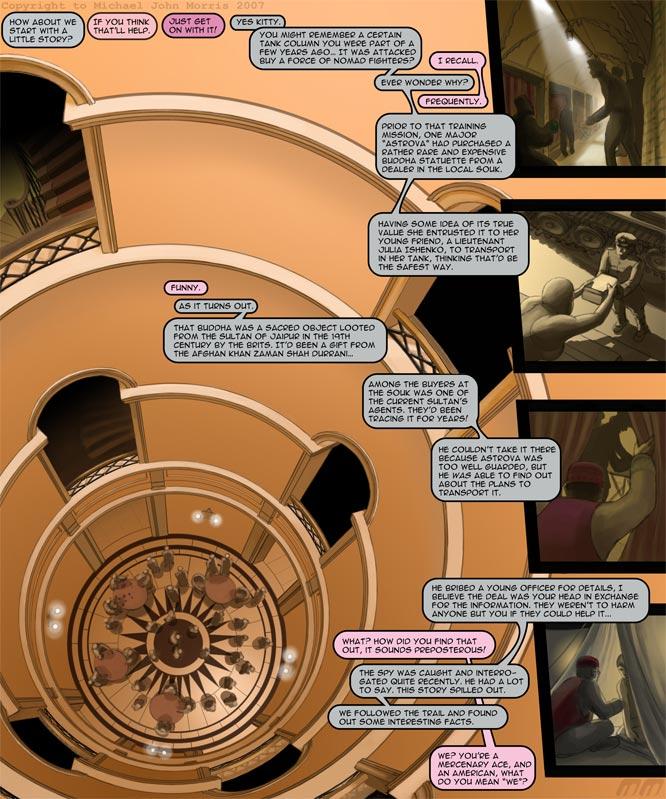 Page description: Ace tells Pinky a little story about the acquisition and provenance of the Buddha statue. It has quite a bearing on the previous chapter! It tells us more background behind what occurred.