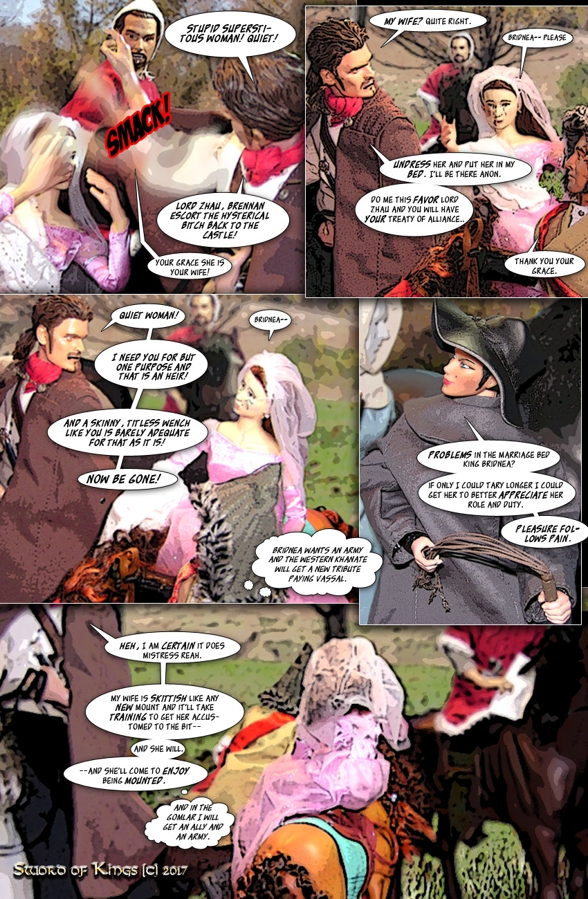 Bridnea is very rough with his wife. So were a lot of Medieval folks. So are a lot of modern folks. It was expected in certain cultures (here's a nice stick to beat the lovely lady with) and in certain places it still is. It was a contracted marriage for politics and an heir. Very important to have a few sons sooner rather than later. Bridnea's dad had children late and a minority was only barely avoided. But then Bridnea IV was impatient and precocious and helped his father's illness a long.