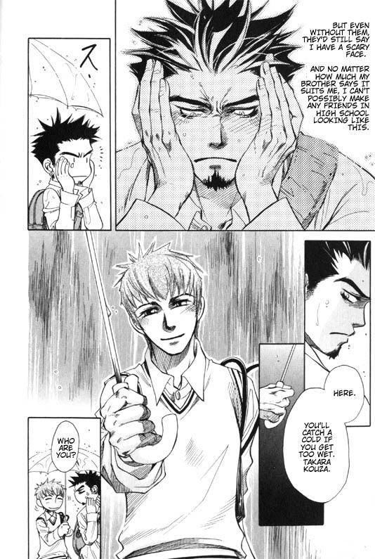 I'm so very proud of this page. Really, so very proud. I hope you guys like it just as much as I do. Maybe soon I'll have a history lesson about Wasso's looks. Cause I really love Naono Boura, the yaoi artist you know. She's like so amazing, her art is nice and you just want to look at it and its intresting. Her characters are always intresting and not what you expect. And you can never really tell who is Uke and who is Seme until they actually do it. I think I really want to be like her, at least if not story wise at least style wise, her style makes me so happy. Okay screw it, it's— -WIRES 2 HISTORY LESSON 2- Wasso's looks are based kinda but not really, offa this guy named Kouza-kun who also has and Older Brother ahaha, from her yaoi Denki that I really enjoy. But even though they may look alike, these two are completely diffrent types. So here's a page with him on it that shows her style well. (Obviously I didn't draw this) and here's an example of what he looks like with his hair dyed. I guess he was more inspiration for Wasso's really-hard-to-draw looks, because I wanted to be able to draw a character with pulled back hair that looked rough and cool. Now, obviously they look a lot diffrent, but whenever I read Denki I always end up thinking of Wasso a lot…so I just thought you guys would like to have a little bit more into the history of WIRES 2. Well hope you learned something~ Thank you guys all so much for the support, really, really I love you all so much! Thanks once again, I can't thank you enough! MUCH LOVE! Aw man P.S. Next time don't let me forget to link you guys to the fun WIRES 2 games I've been making with David over at my DeviantArt, I keep forgetting to tell you guys!