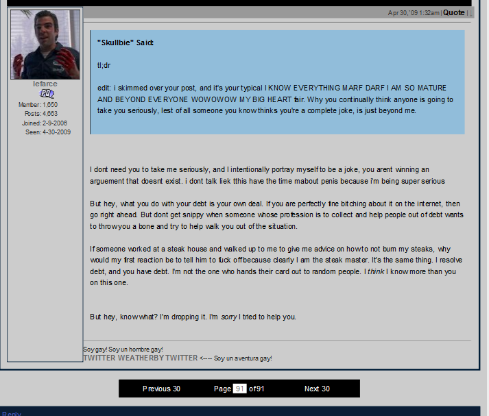 edit: i skimmed over your post, and it's your typical I KNOW EVERYTHING MARF DARF I AM SO MATURE AND BEYOND EVERYONE WOWOWOW MY BIG HEART fair. Why you continually think anyone is going to take you seriously, lest of all someone you know thinks you're a complete joke, is just beyond me.