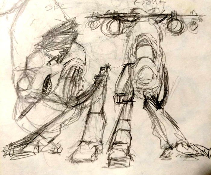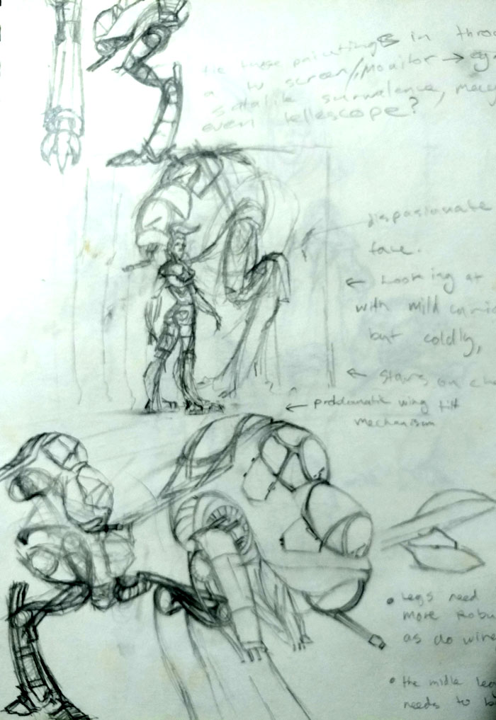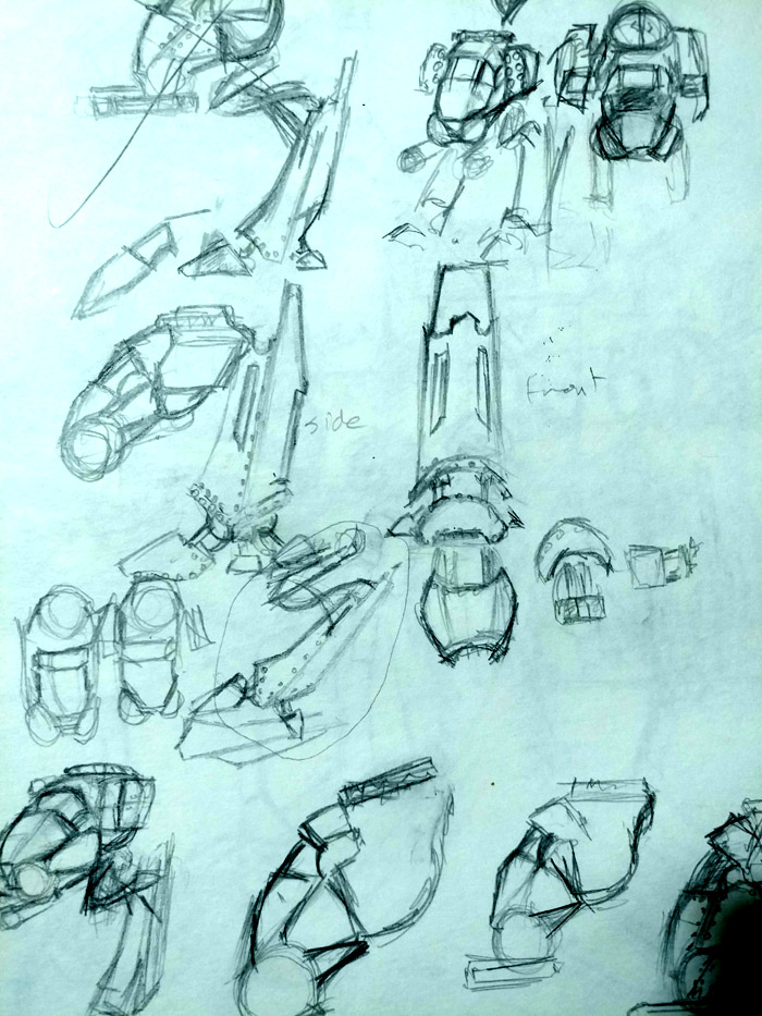 I decided that most of the machinery was in the legs, which would drive struts that move the main pod. This would save space on the rest of the machine, allowing me to make it smaller and more compact.