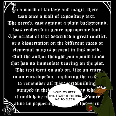 If your comic started with a wall of text, that doesn't mean your comic as a whole is BAD! Not every criticism is a condemnation and a misstep does not necessarily ruin the comic. However, every webcomic I've read that starts off this way would not be hurt in the least by deleting their text-wall intro, and that says something doesn't it? Let your new reader savor the first moments of discovering your world by inviting them to experience it through your character's perspective. The history lesson can come later.