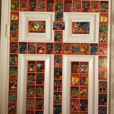 Earlier this year, I hoped to find the same Series II cards that were sold in comic shops nearly thirty years ago. Fortunately, the “one man’s trash is another man’s treasure” rhetoric still rings true, and one-by-one, I organized each card in a neat pattern over my door.