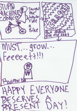 hey guys! im gonna try and get more frequent updates going, like monday wednesday friday kinda, but im super busy right now. im redoing the site with a bunch or random crap. a music section, where im gonna post some songs i wrote about stupid machine (oh no) a bio section. so anyone who wants to know who i am, feel free to look at it a new better forum!!! forums are cool, so why dont i get a good one? also, i got a present from silent ninja for "everyone deserves a present day!" thanks. everyone deserves a present day is the new coolest holiday. write it on your calender. NOW. k later guys
